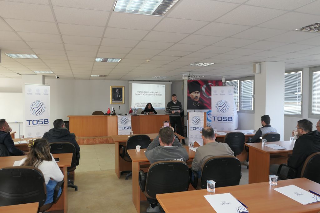 Turgutlu OSB Sürekli Eğitim Merkezi tarafından düzenlenen “Enerji Verimliliği ve ISO 50001 Bilgilendirme Toplantısı” konulu eğitime katılan tüm katılımcılarımıza ve bilgilendirmelerinden ötürü Başdenetçi Sayın Mihriban AYDIN ve TOSB İmar ve Fen İşleri Şefi Haydar Oğuz İZMİRLİ’ye teşekkür ederiz.